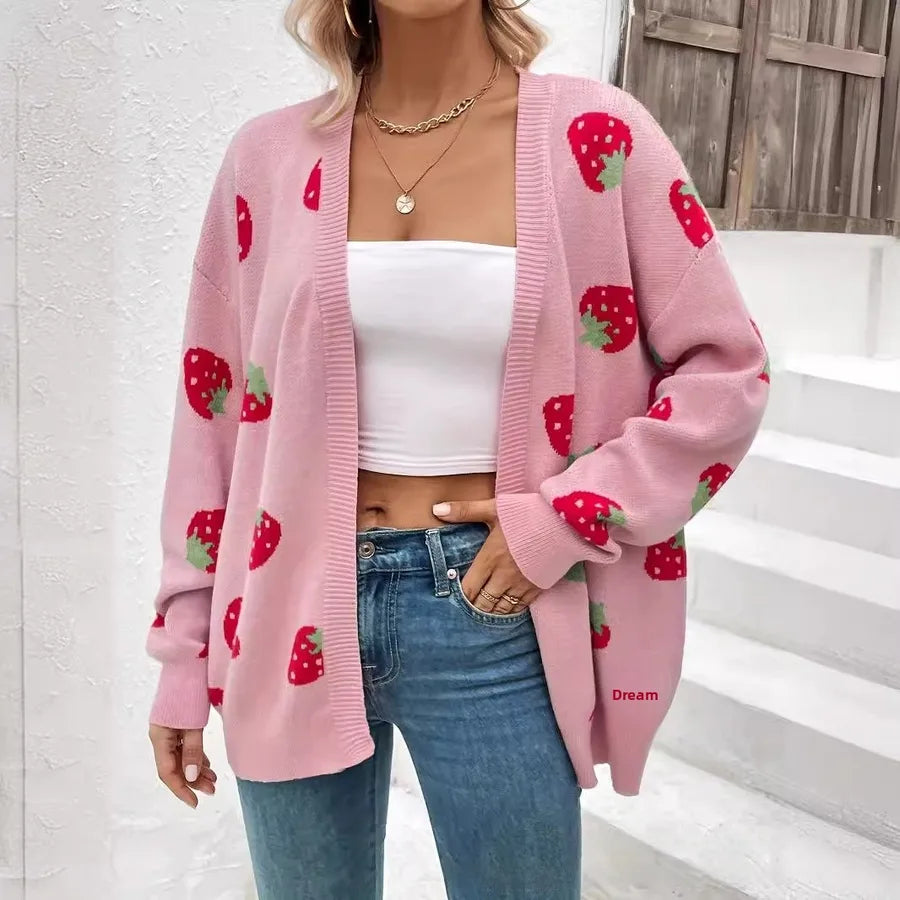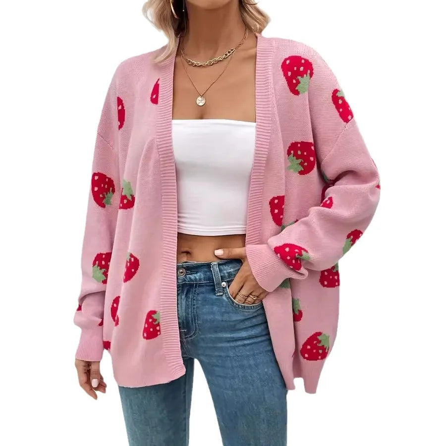 Strawberry Long Sleeve Knitted Cardigan