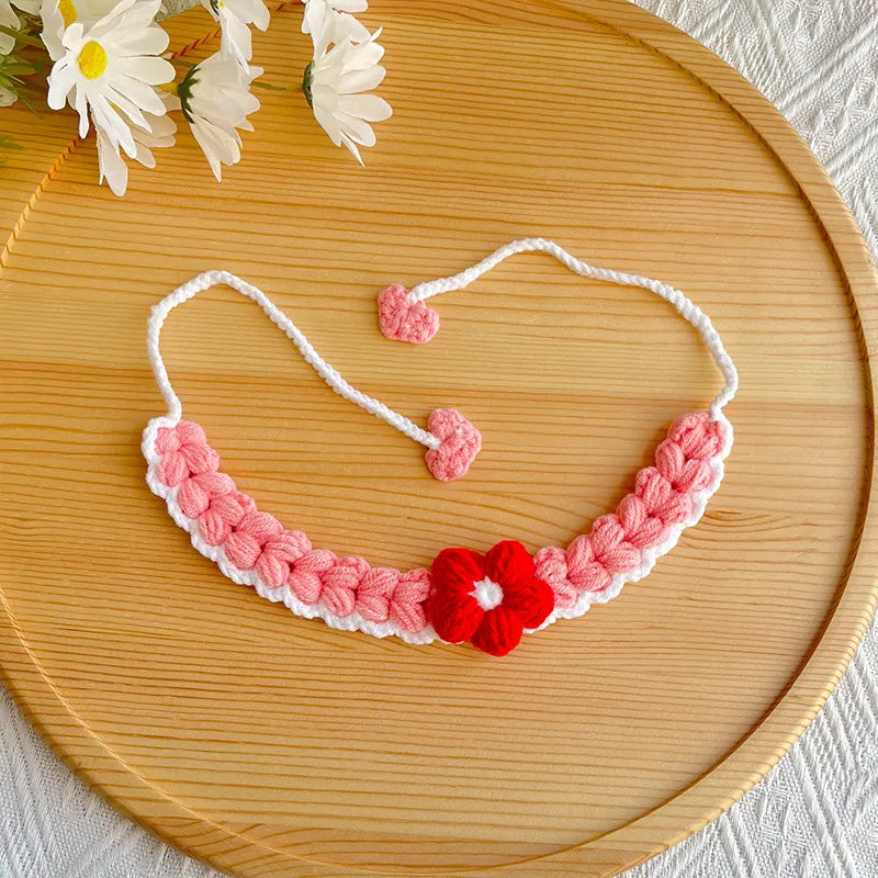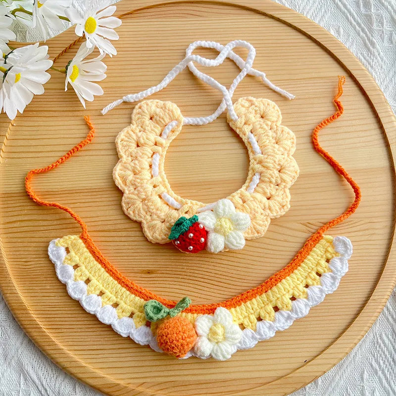 Spring Knitted Pet Scarf Orange Decorative Dog Cat Flower Yarn Headscarf All-Season Pet Accessories