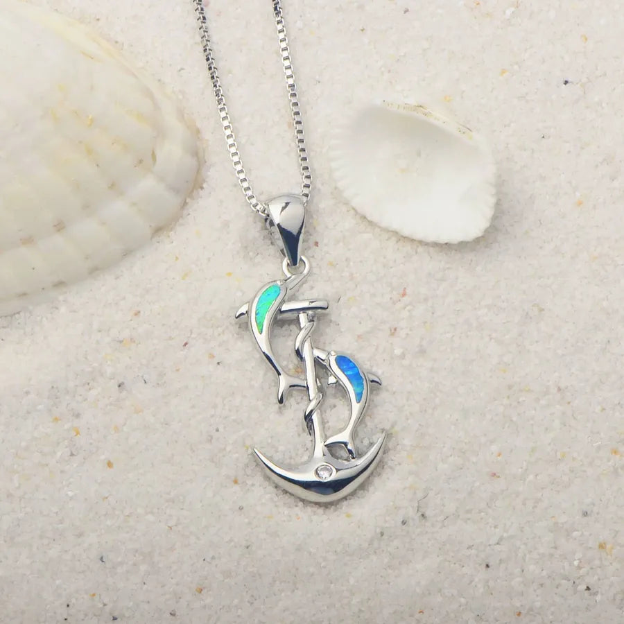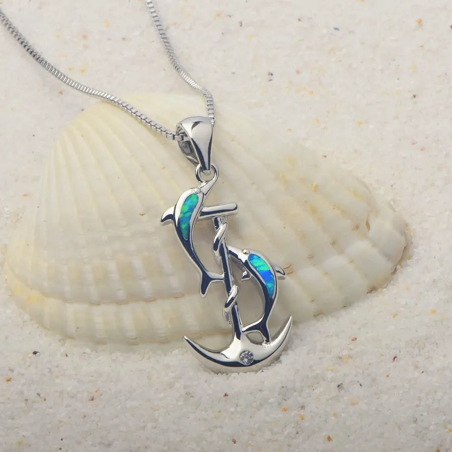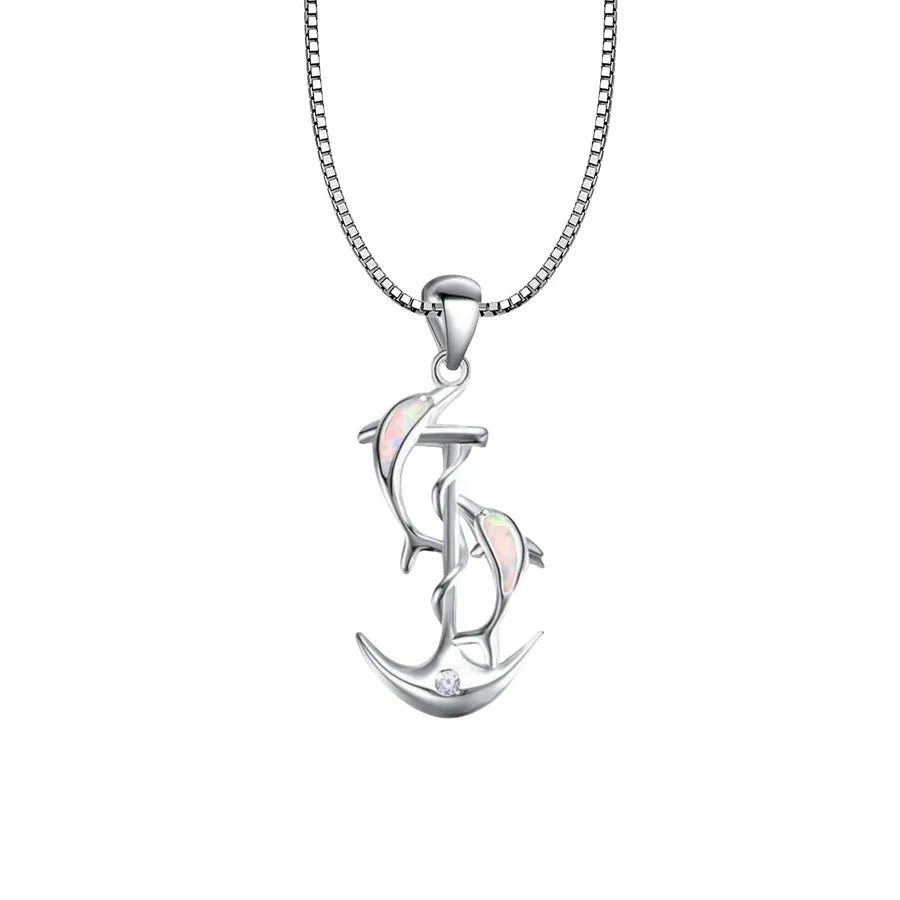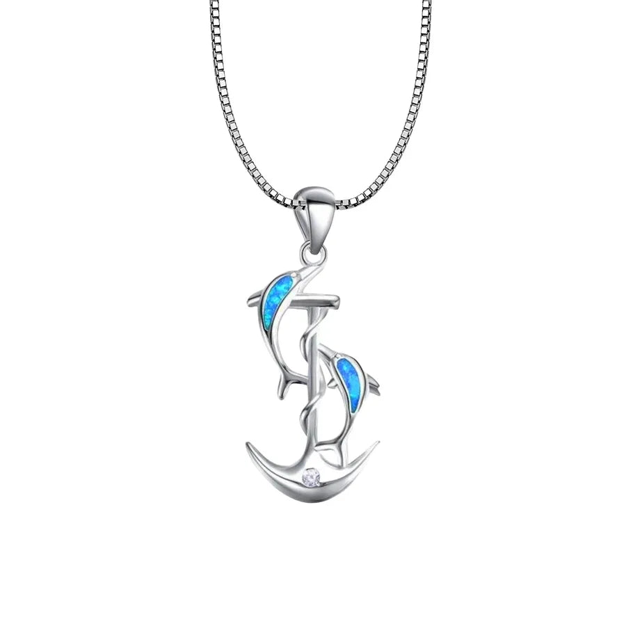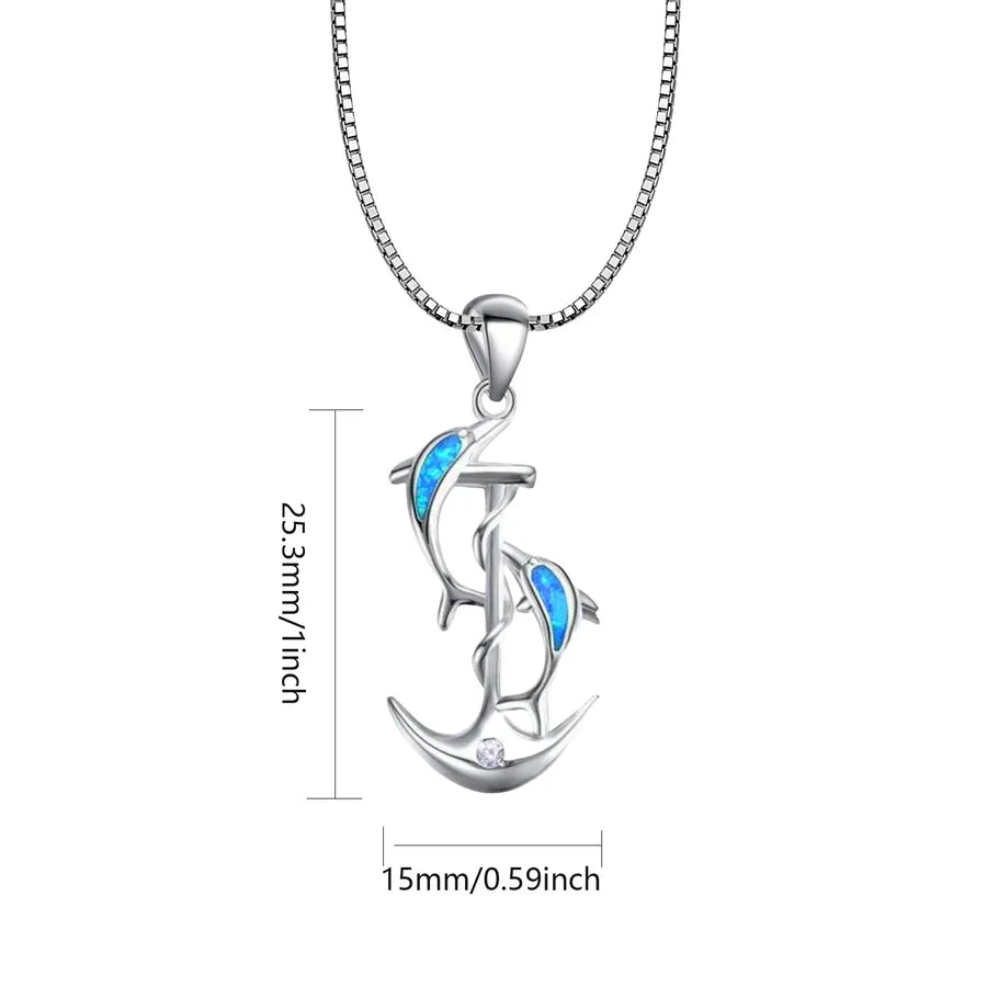 Blue Dolphin Pendant Necklace Small Dolphin Jewelry Opal Inlaid Simple Style Animal Pattern Copper Material Tiktok Ins Popular