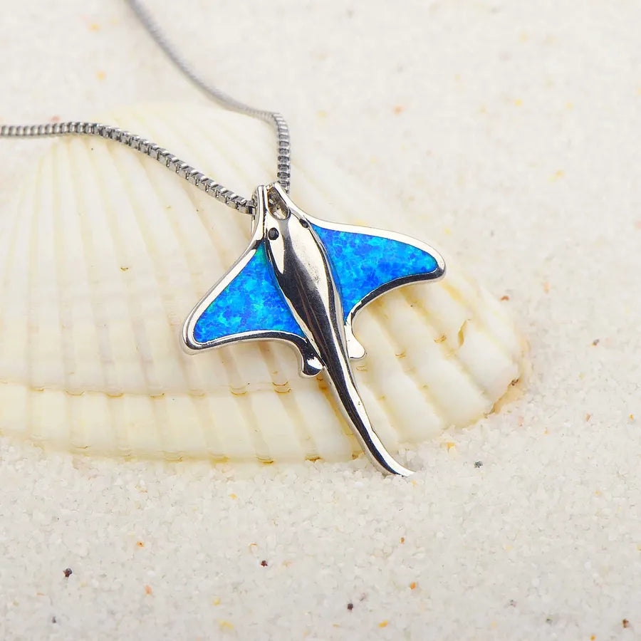 Blue Opal Devil Ray Pendant Necklace Women's Fashion Jewelry Sweater Chain Simple Style Copper Alloy Animal Pattern Necklace