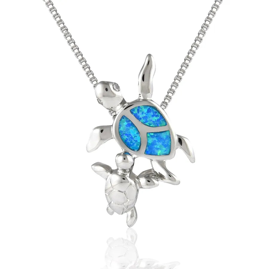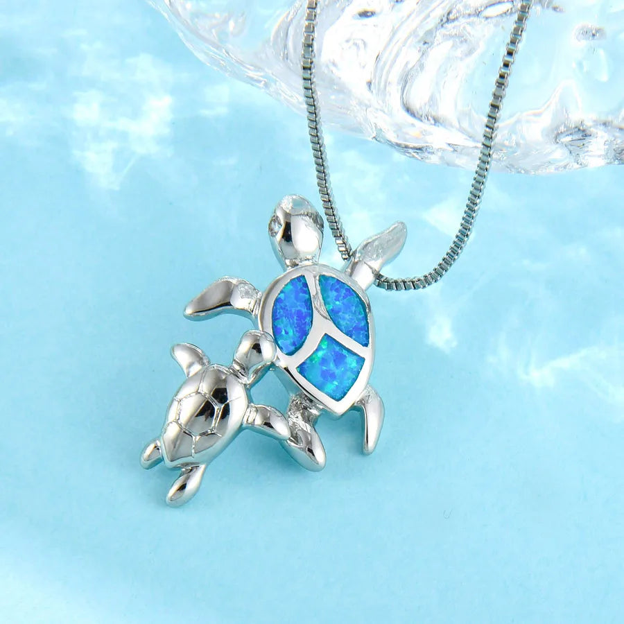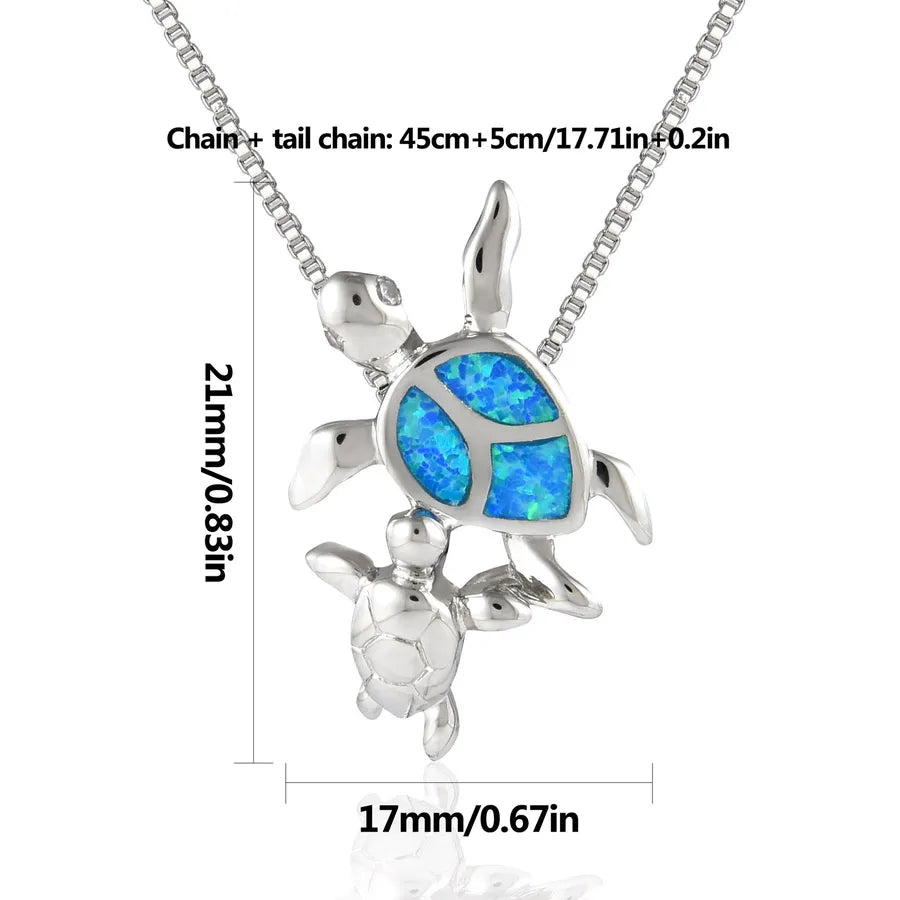 Blue Opal Embedded Turtle Pendant Necklace Double Tiktok Ins Style Simple Animal Pattern Copper Jewelry Accessory