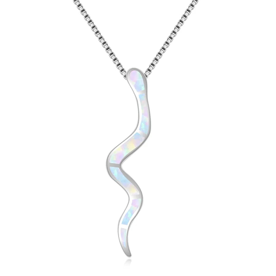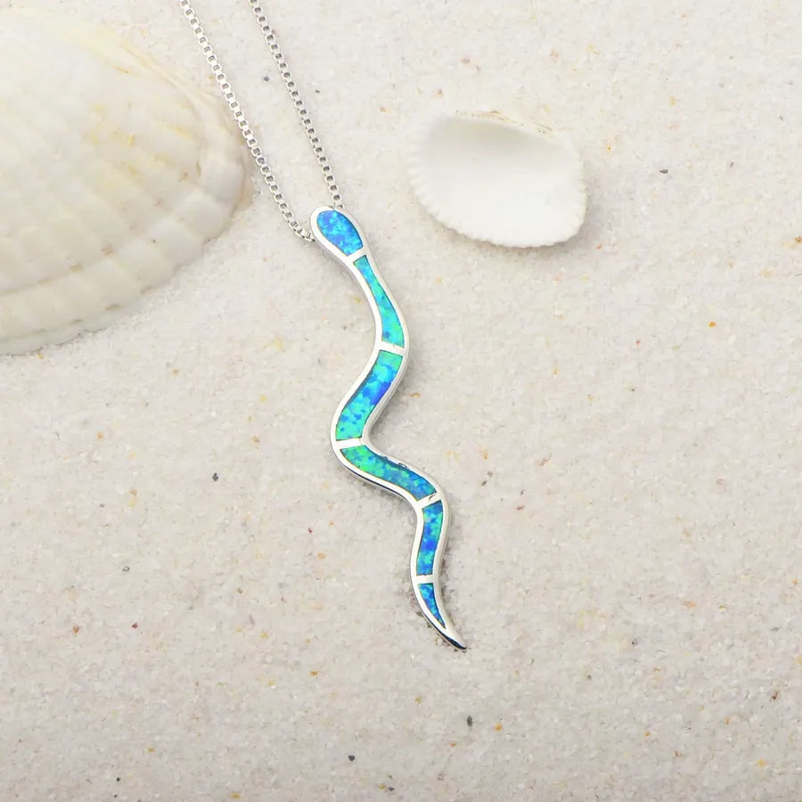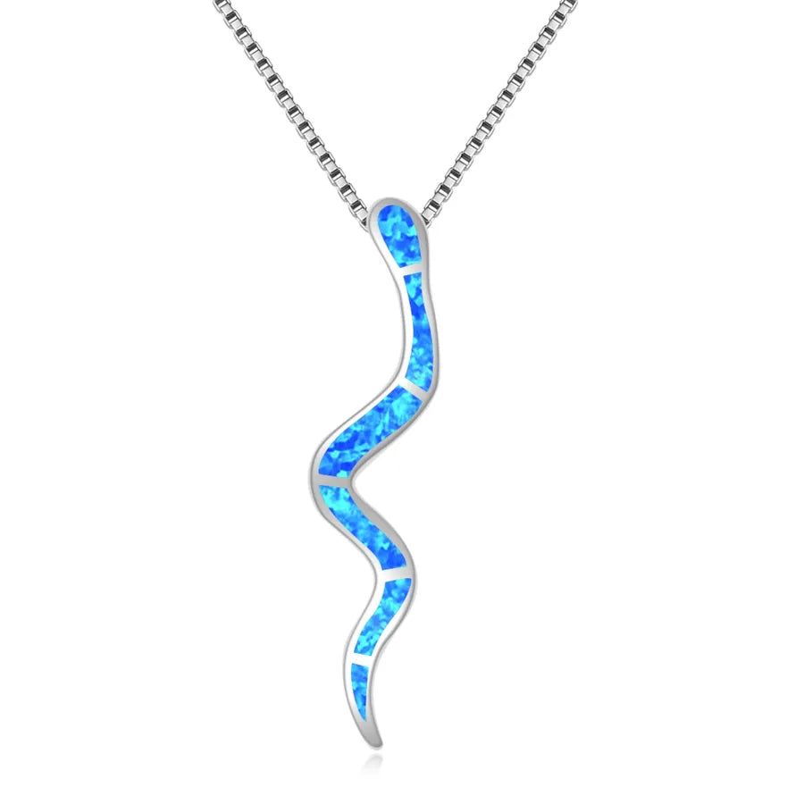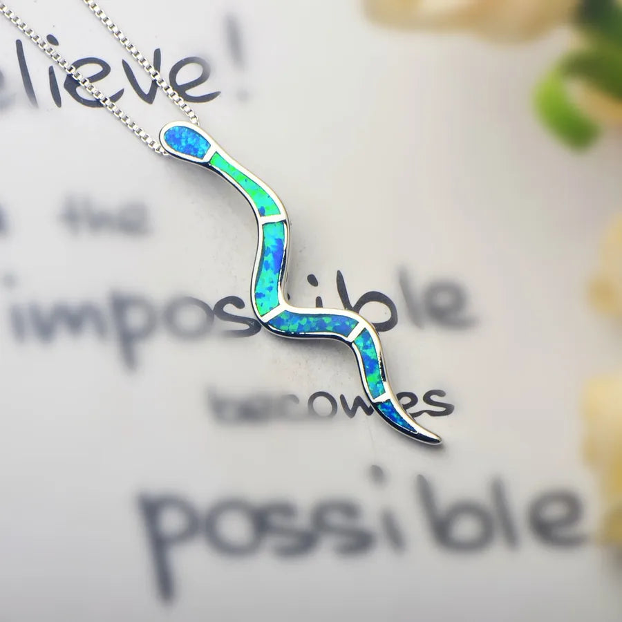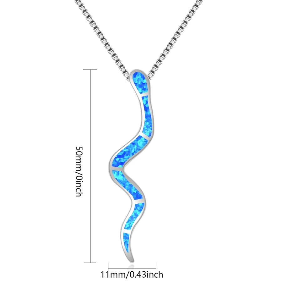 Blue Opal Snake Pendant Necklace TikTok Trendy Minimalist Style Wind Sweater Chain Jewelry Accessory