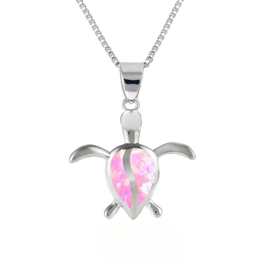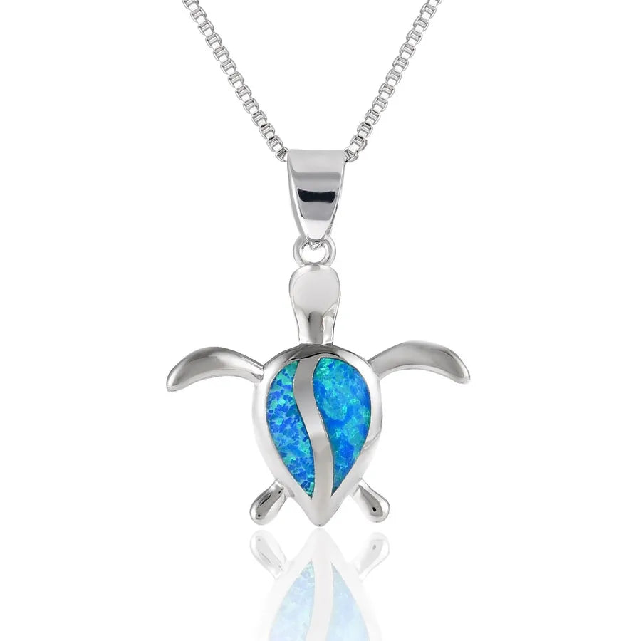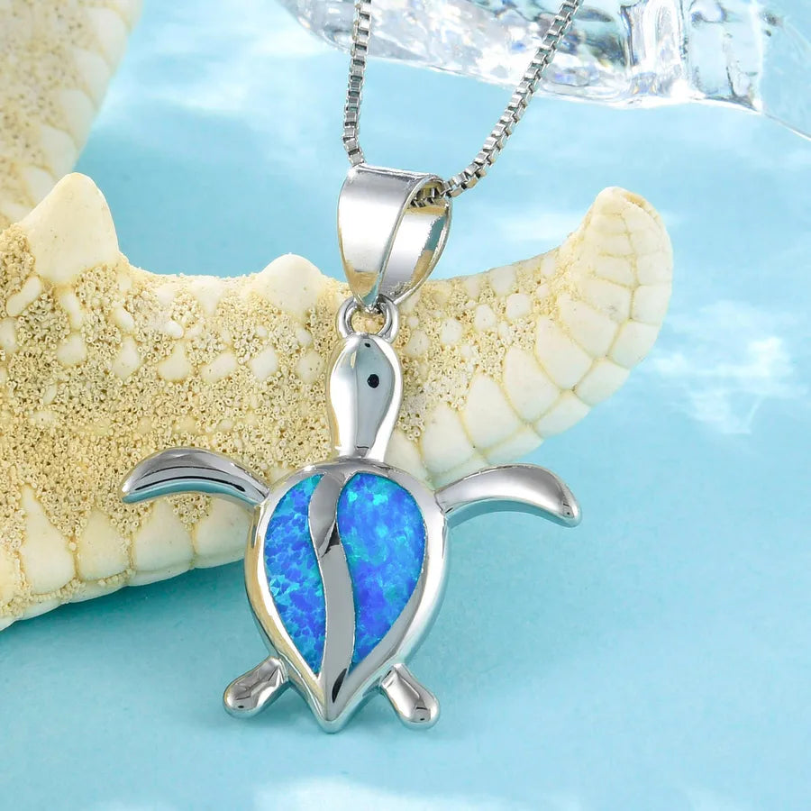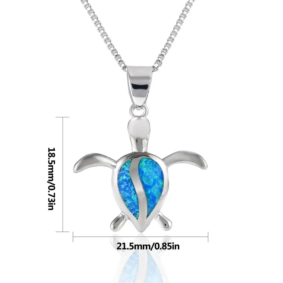 Blue Turtle Pendant Necklace Opal Embedded Australian Aquamarine Animal Pattern Copper Material Holiday Style Electroplated Craft