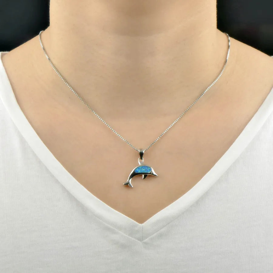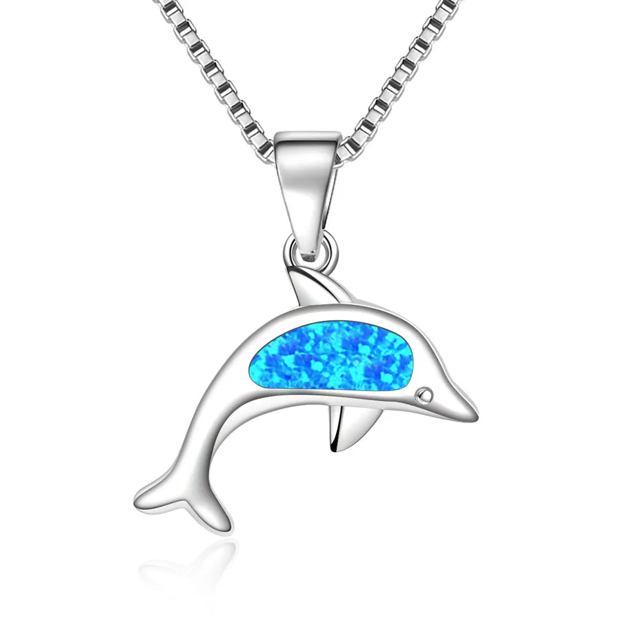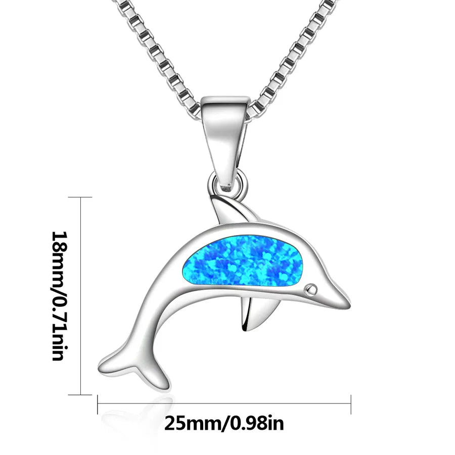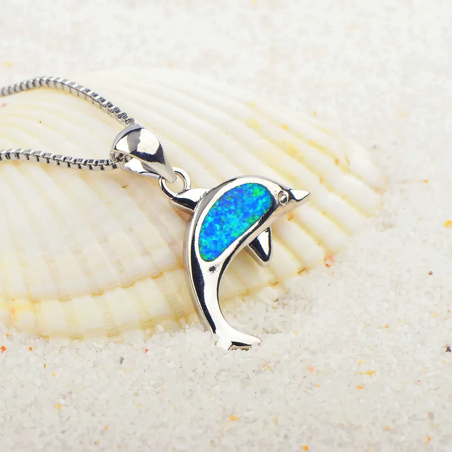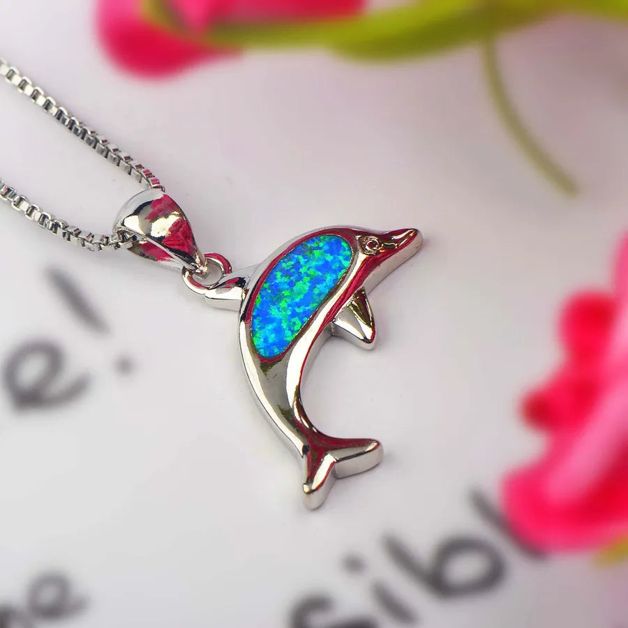Fashionable Opal Dolphin Pendant Women's New Style Jewelry Color Gemstone Embellished Necklace Animal Pattern Holiday Style