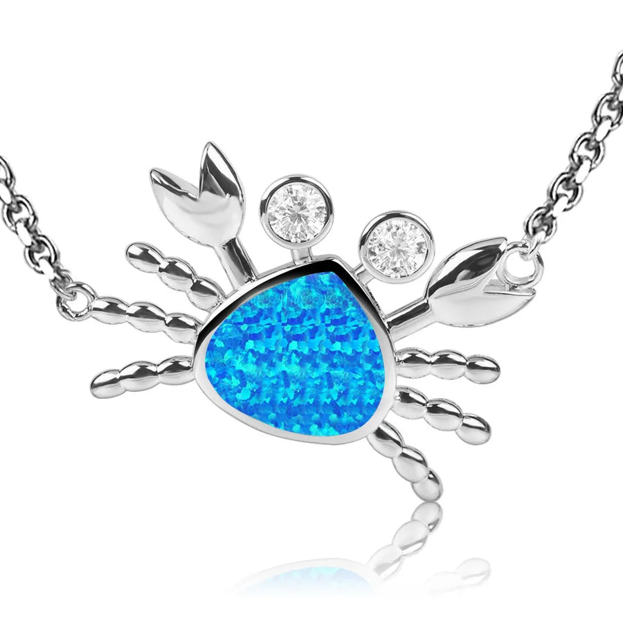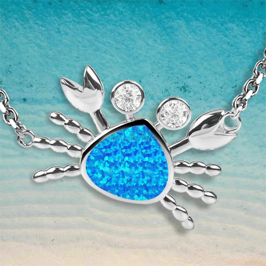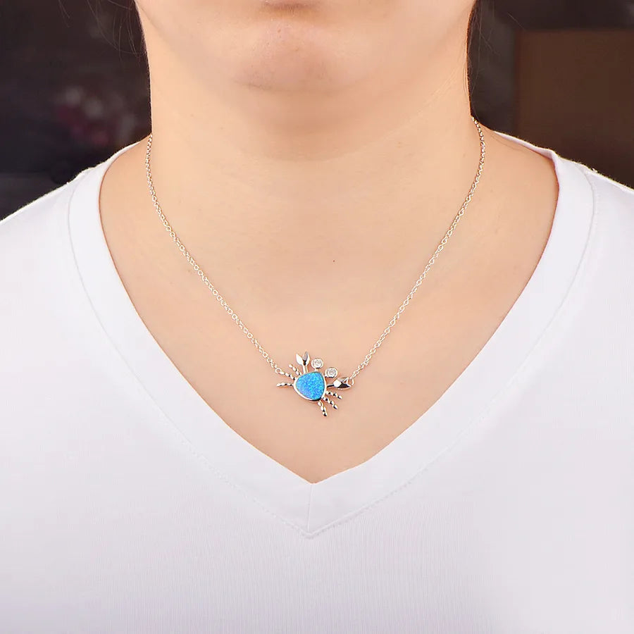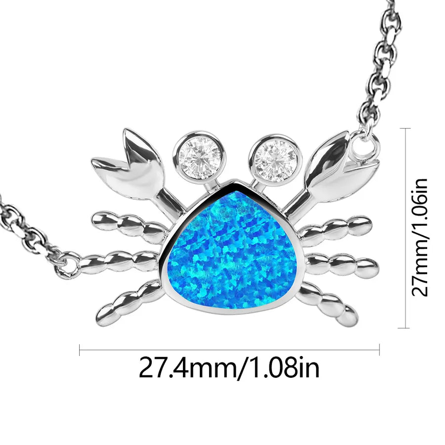Fashionable Opal Hawaiian Ocean Crab Pendant Necklace Colorful Gemstone Jewelry Set In Simple Style Copper Animal Zodiac Theme