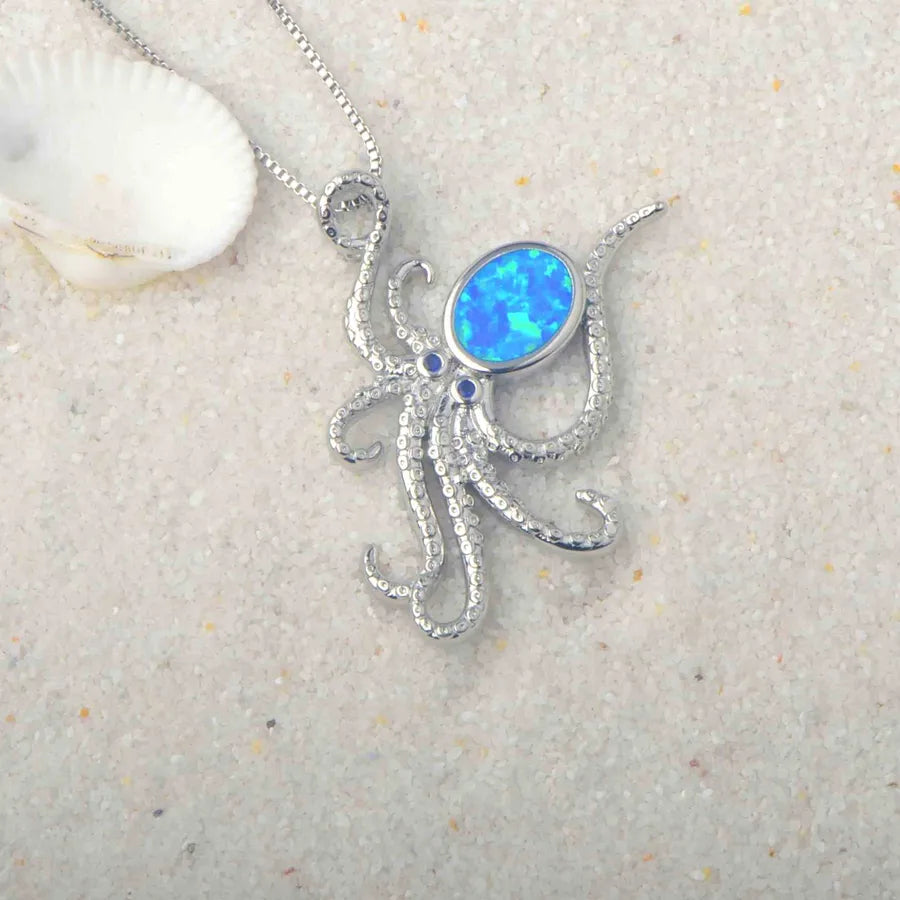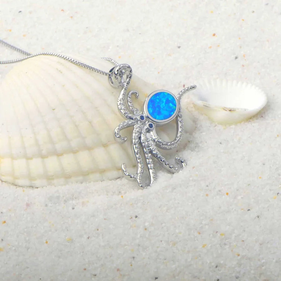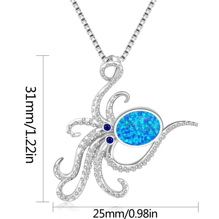 Fashionable Opal Octopus Pendant Necklace Colorful Gemstone Jewelry Embedded With Opal Animal Pattern Copper Material Holiday Style