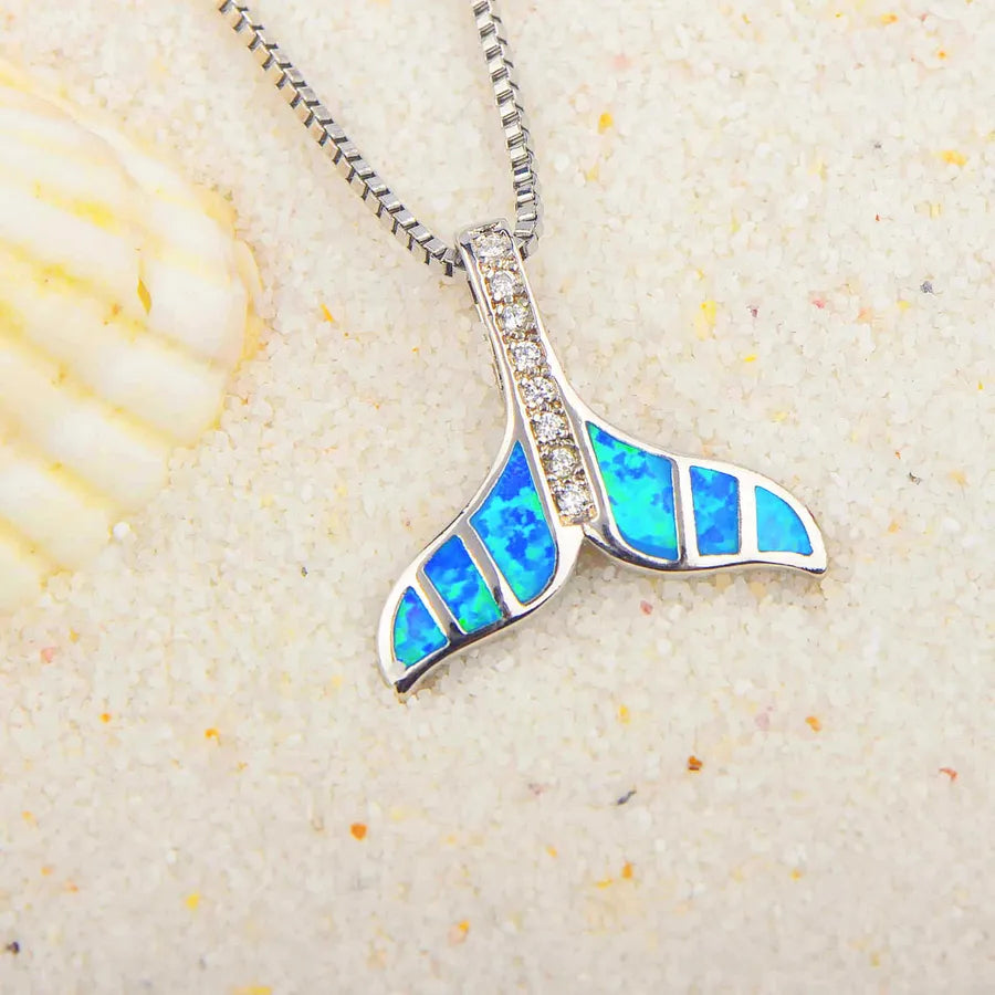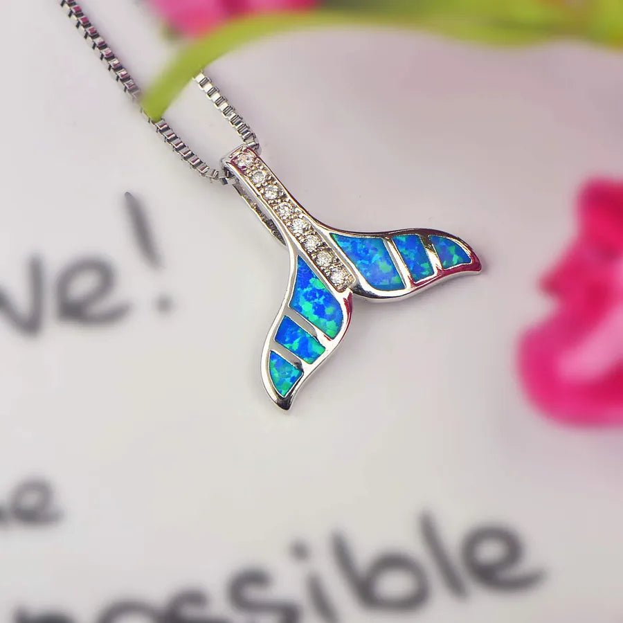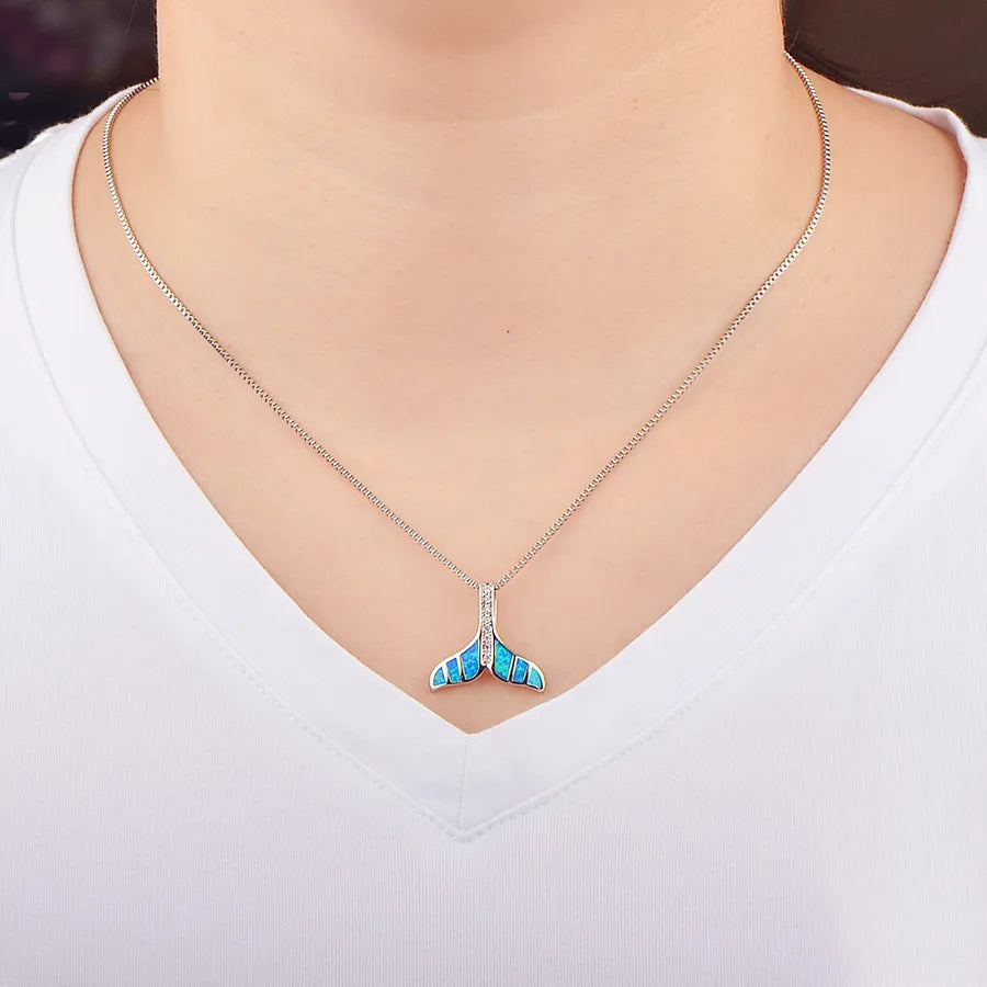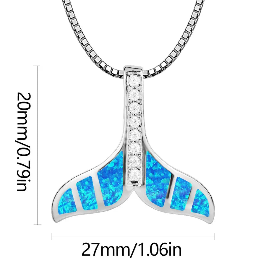 Hawaiian Blue Opal Whale Tail Necklace Fish Tail Pendant Sweater Chain Simple Style Jewelry Copper Material Animal Pattern
