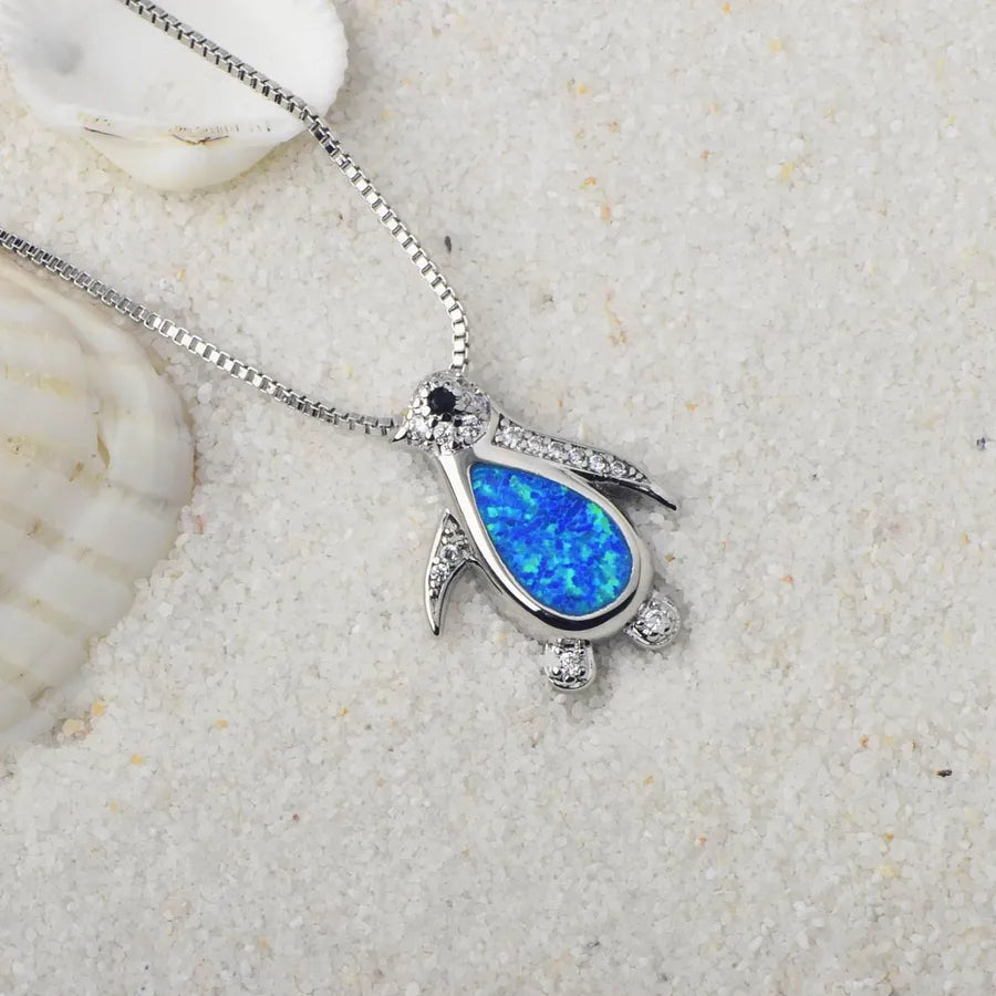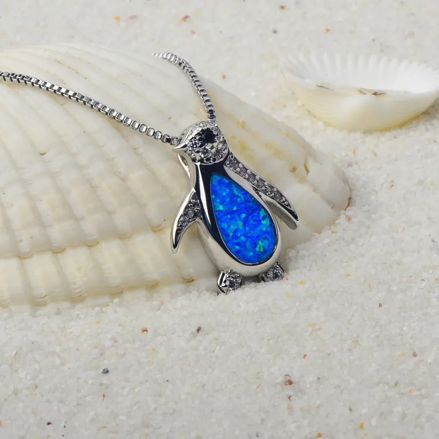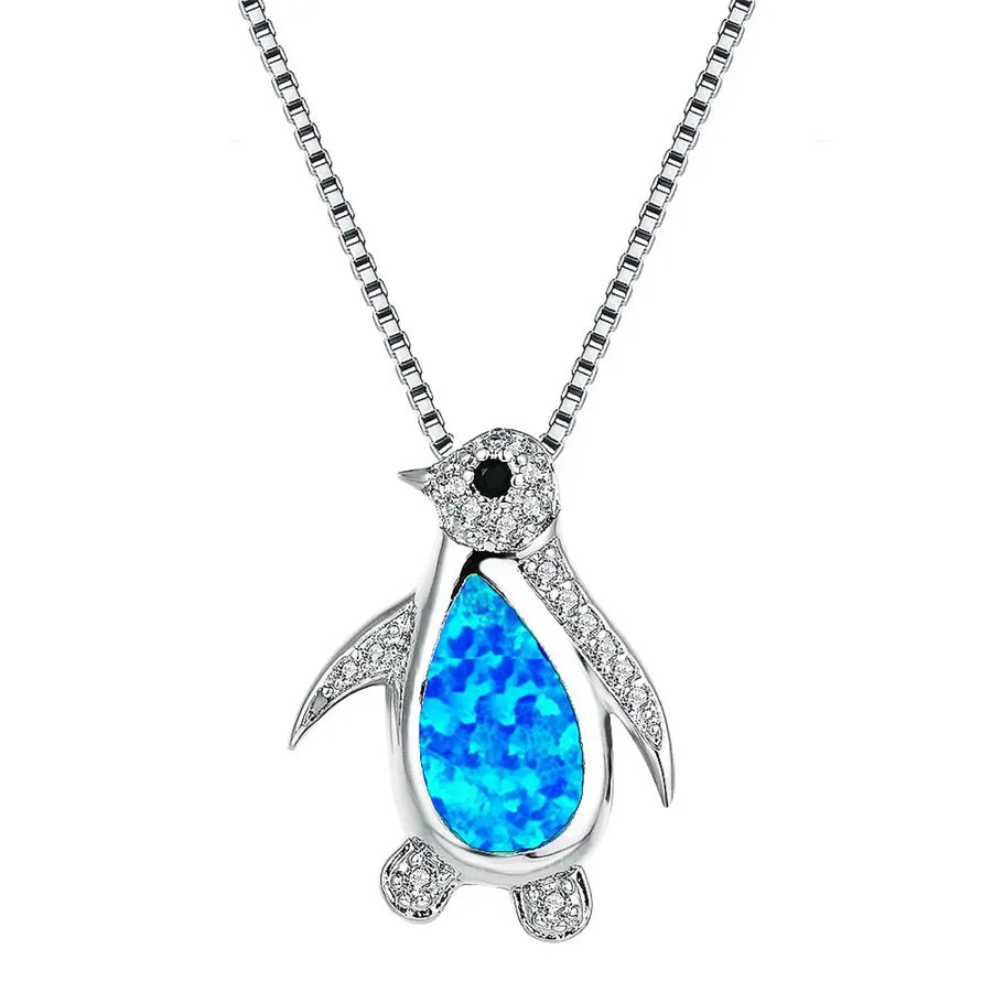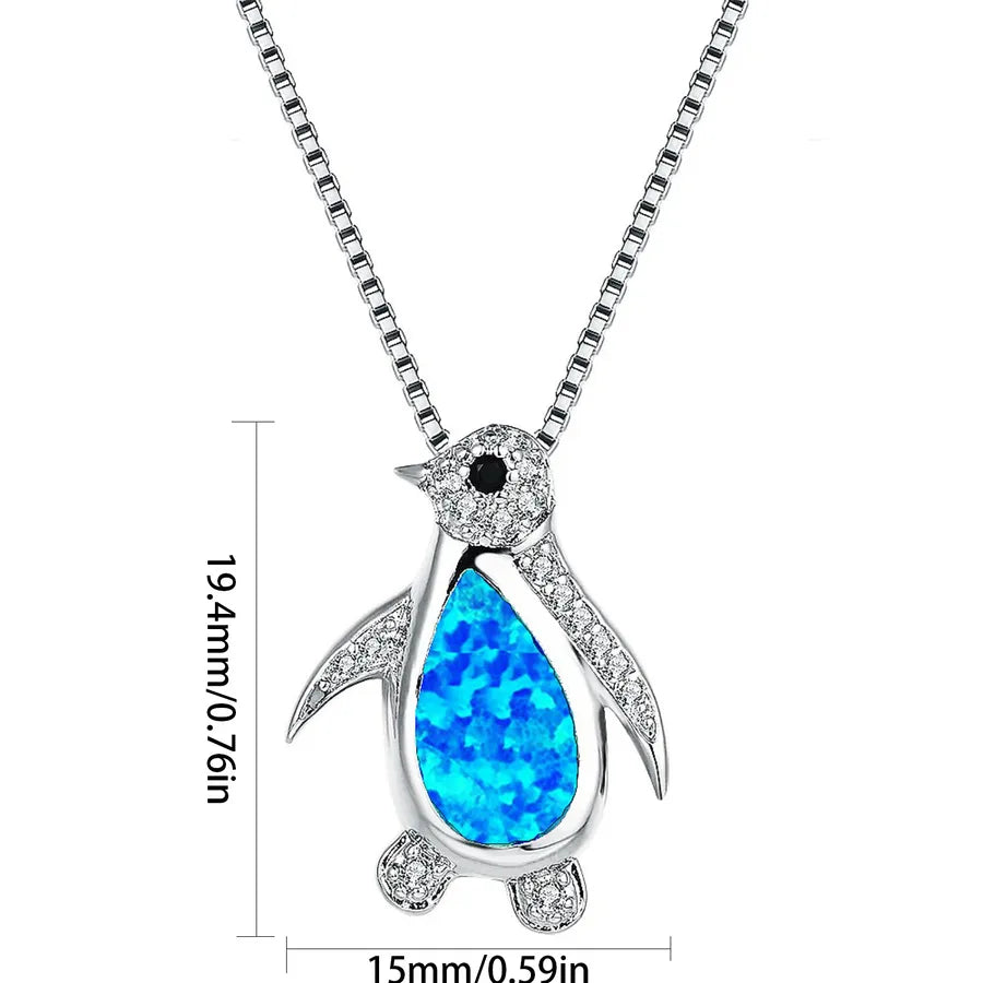 Penguin Pendant Necklace Jewelry Opal Embedded Australian Style Simple Design Animal Pattern Copper Material Electroplated Finish