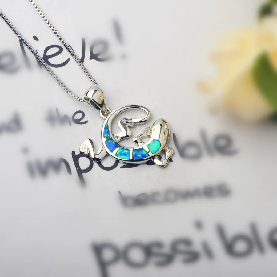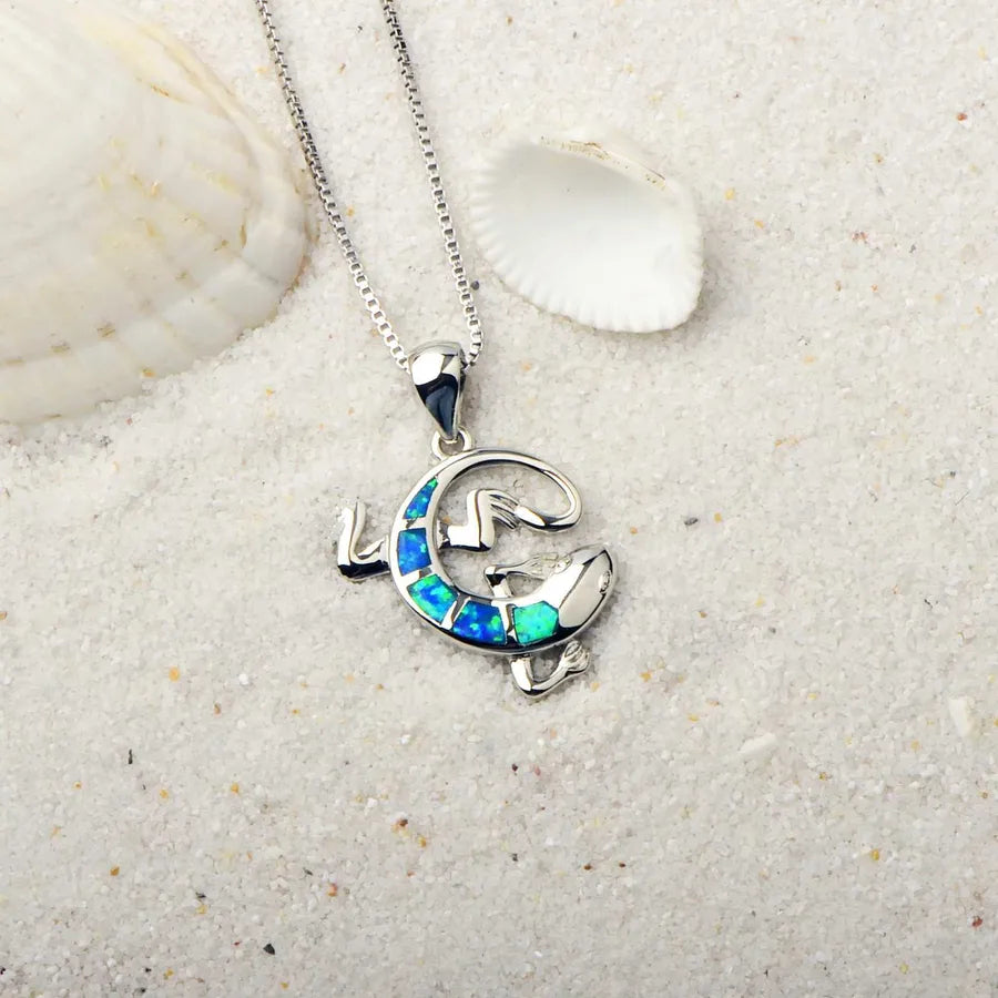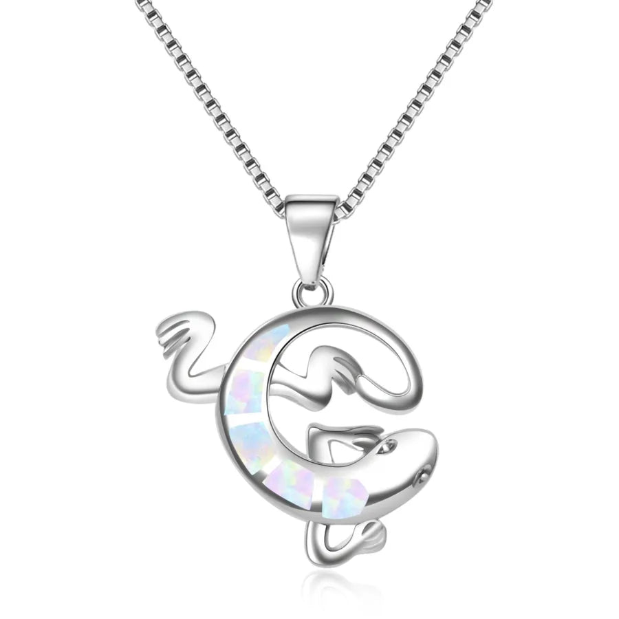 Tiktok Ins Style Bestselling Australian Opal Lizard Pendant Necklace Simple Design Electroplated Copper Animal Zodiac Jewelry