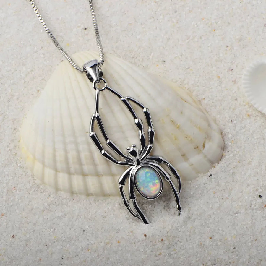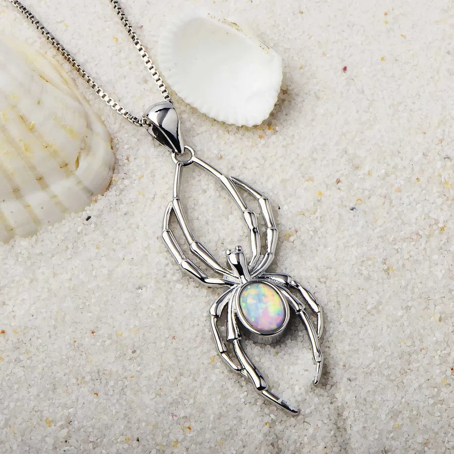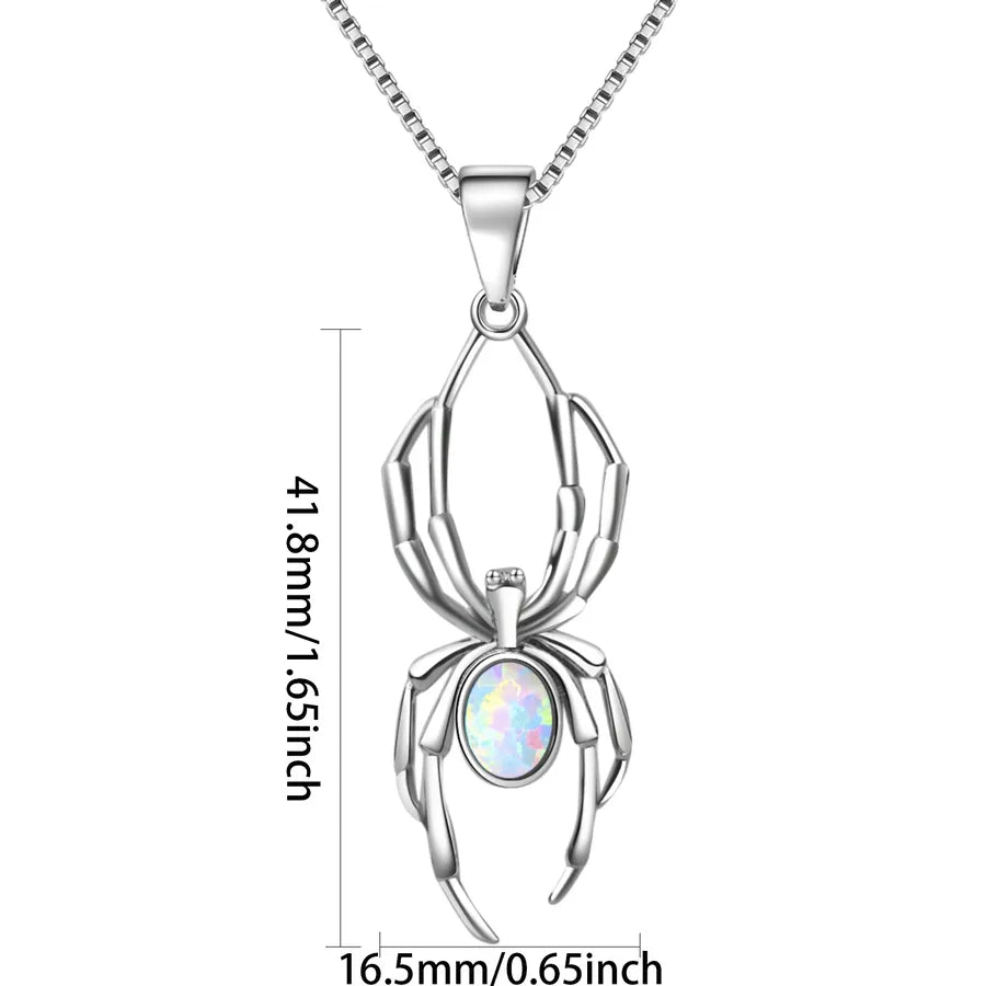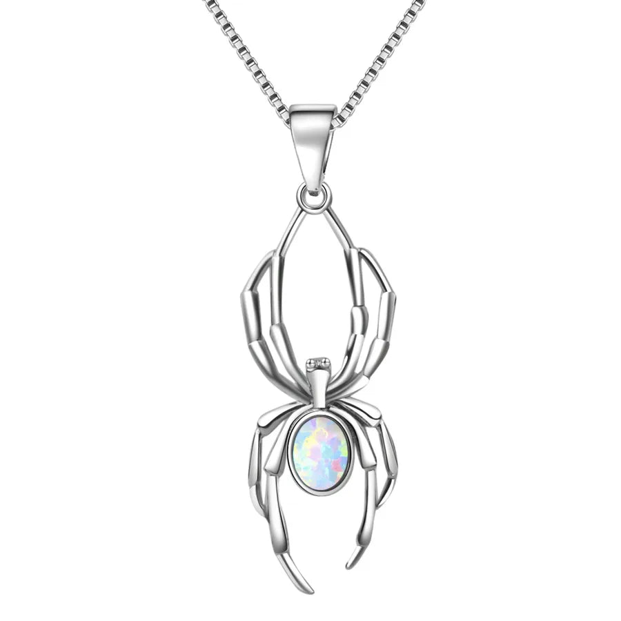 White Opal Spider Pendant Necklace Tiktok Ins Style Simple Animal Pattern Copper Jewelry Electroplated Finish Fashion Accessory