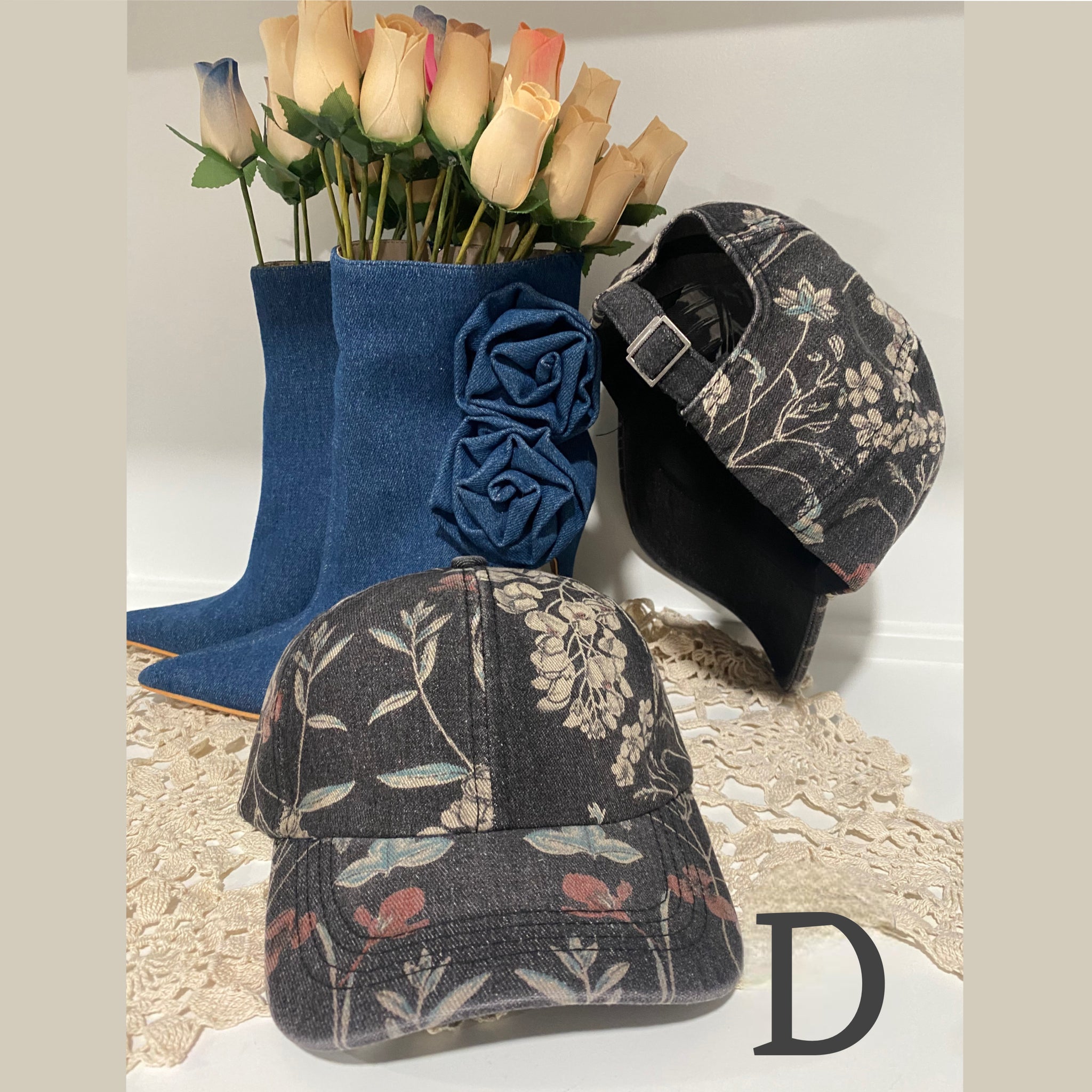 This go-to accessory is perfect for effortless everyday style. It pairs perfectly with just about everything. Dark denim with a delicate floral print. Adjustable back with a convenient slide for a custom fit.