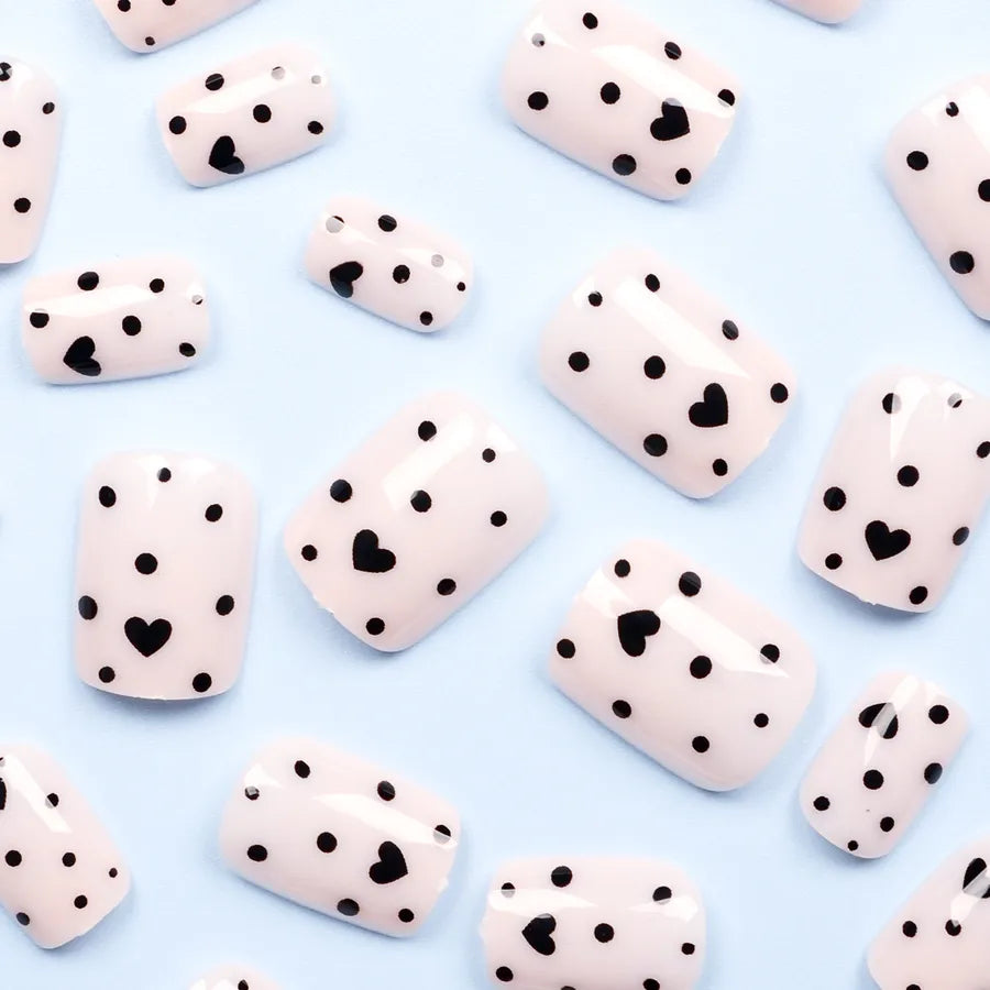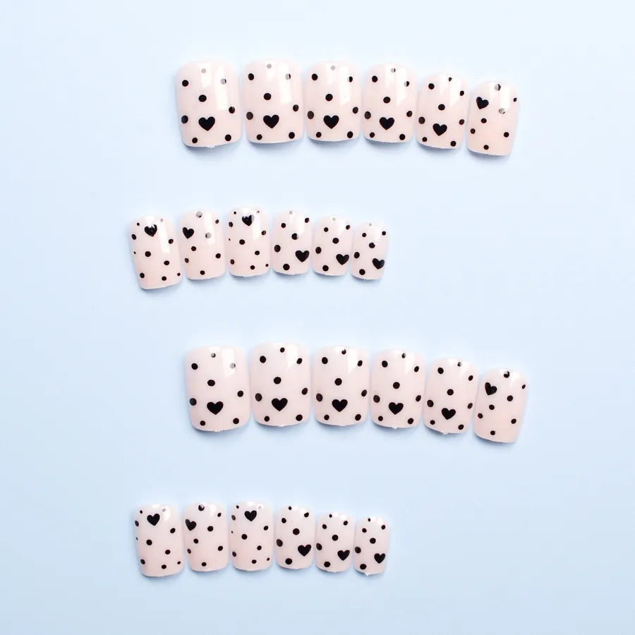 Black Heart Nail Stickers 24 Pieces Short Square Design Valentine's Day
