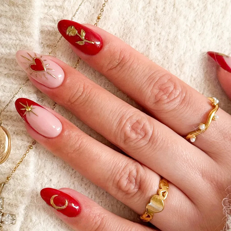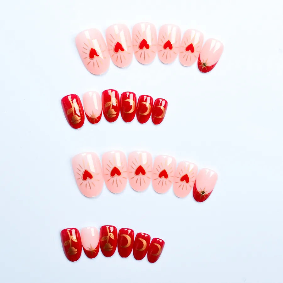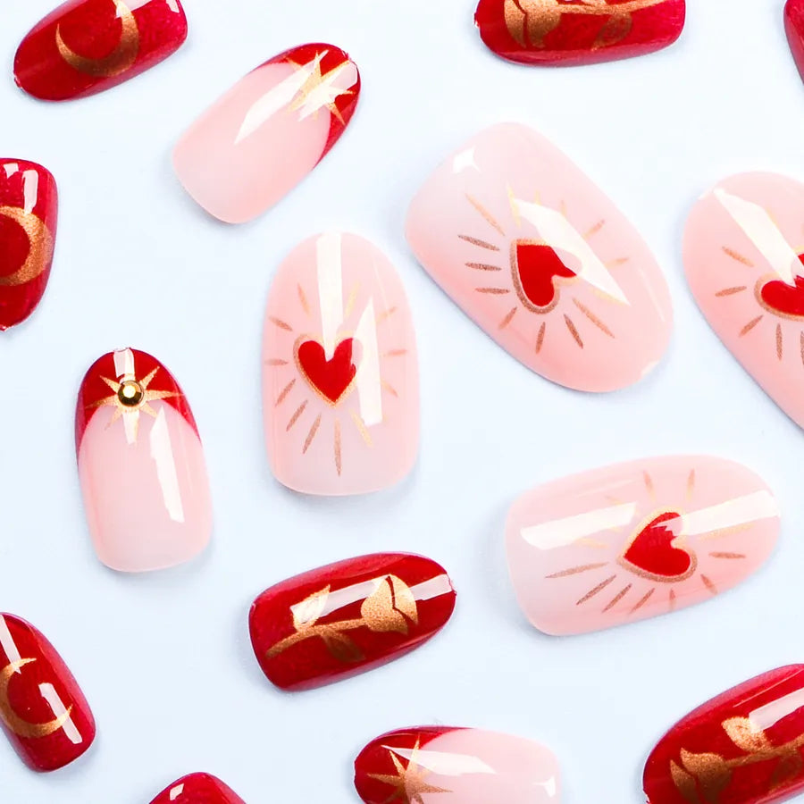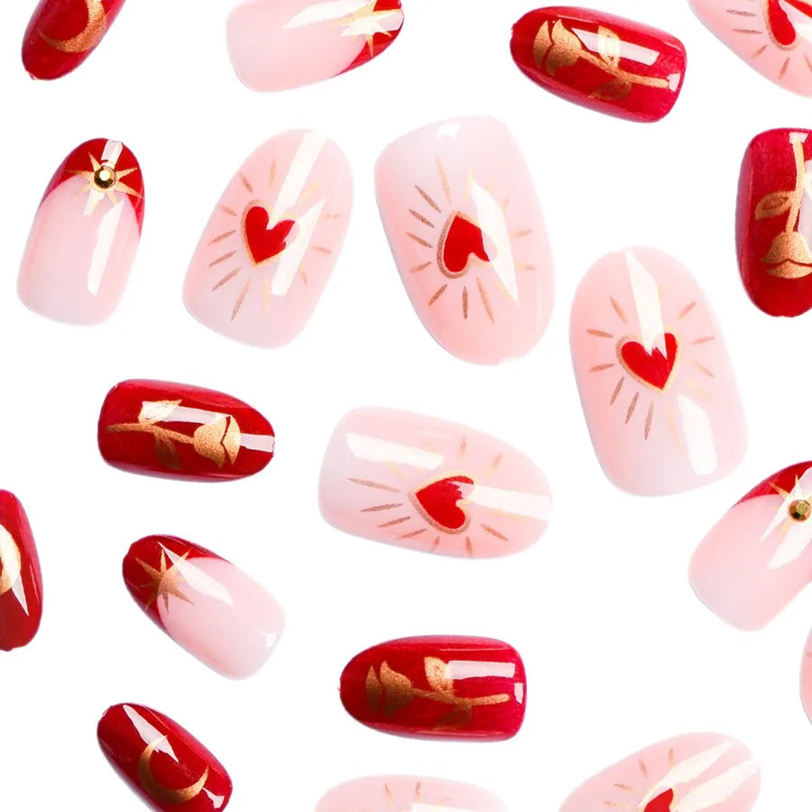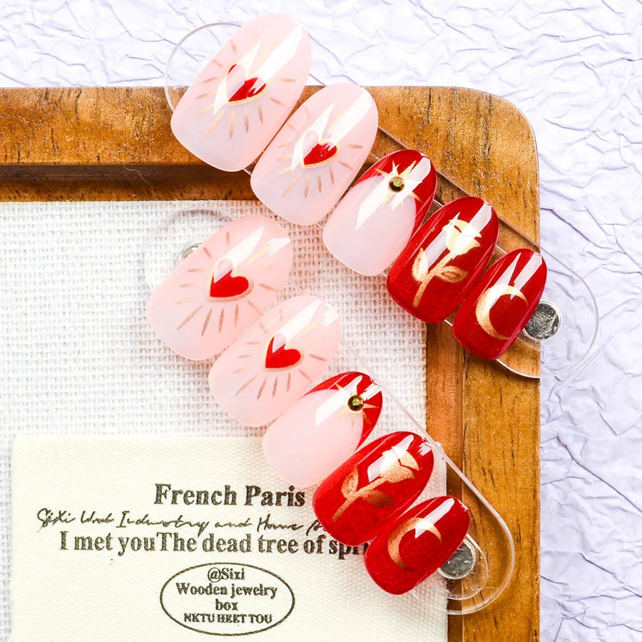 Red Rose Heart-Shaped Nail Stickers Valentine's Day Wearable Nails