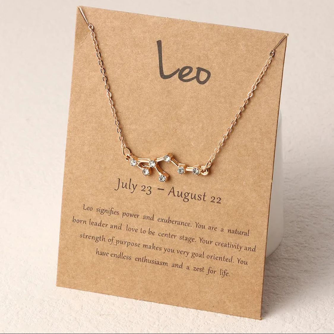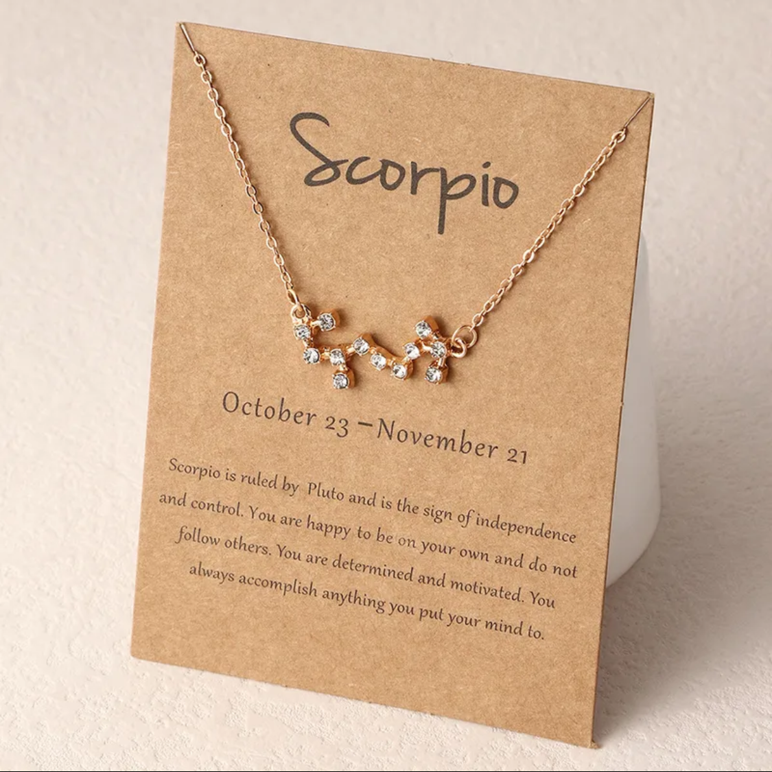 Shine bright like the stars with this beautiful constellation necklace ✨ Featuring sparkling rhinestones that form your zodiac constellation 🌟, this piece sits on an 18” gold-tone alloy metal chain 💛. Lightweight and easy to wear, it’s perfect for everyday sparkle ✨ or as a meaningful, personal gift for someone special 🎁💖.