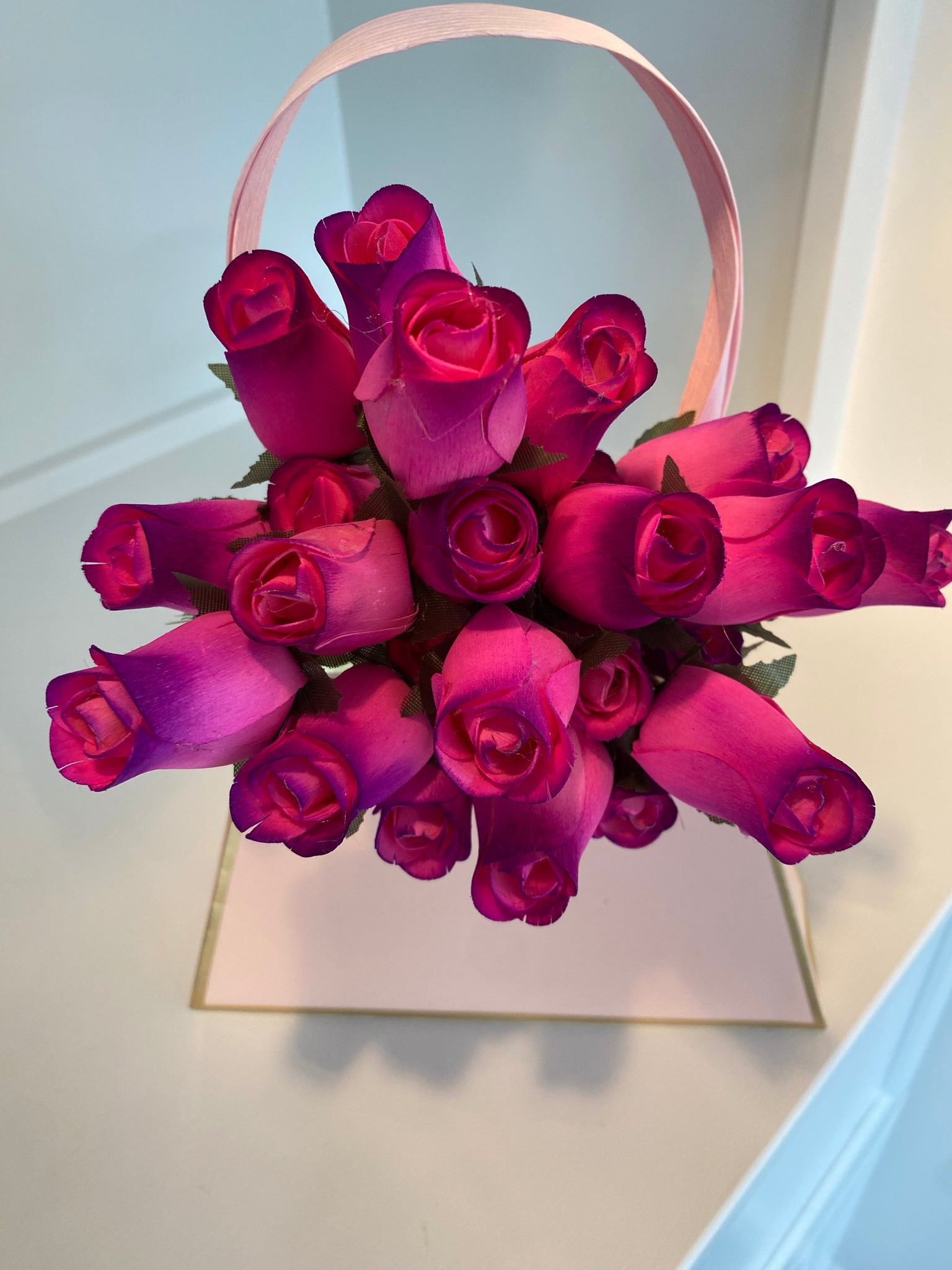 Delight someone special with a charming gift—a petite purse filled with 24 handcrafted wooden roses. Perfect for Birthdays, Mother’s Day, Graduations, Weddings, or simply to say “Thinking Of You.”